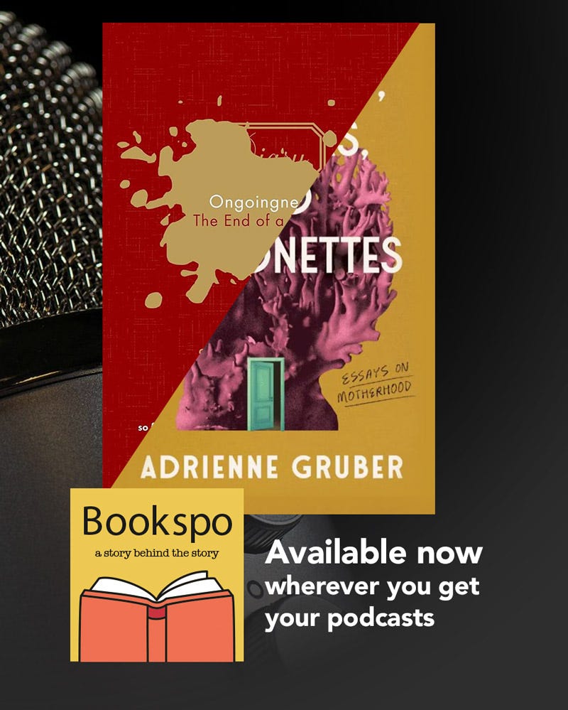 Oh, wow, get ready for Adrienne Gruber’s amazing conversation about her fourth book, which is also her first essay collection, MONSTERS, MARTYRS AND MARIONETTES: ESSAYS ABOUT MOTHERHOOD, and the numerous threads that connect it to Sarah Manguso’s memoir ONGOINGNESS: THE END OF A DIARY.